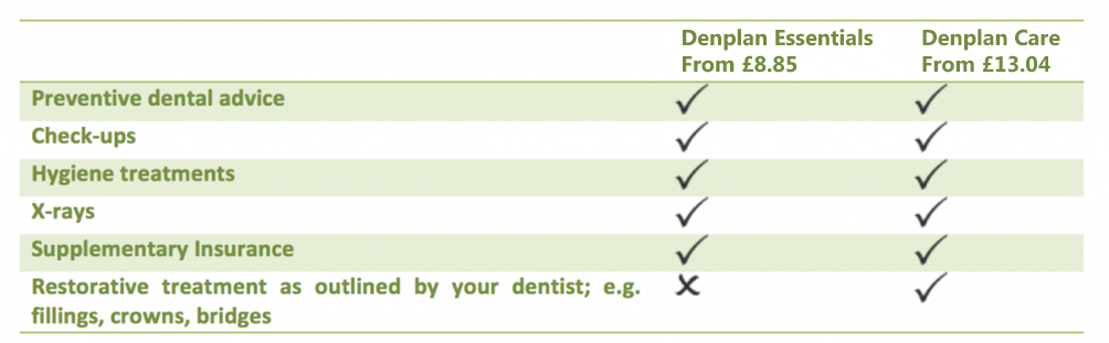 All Denplan payment plans include Supplementary Insurance as part of your plan.